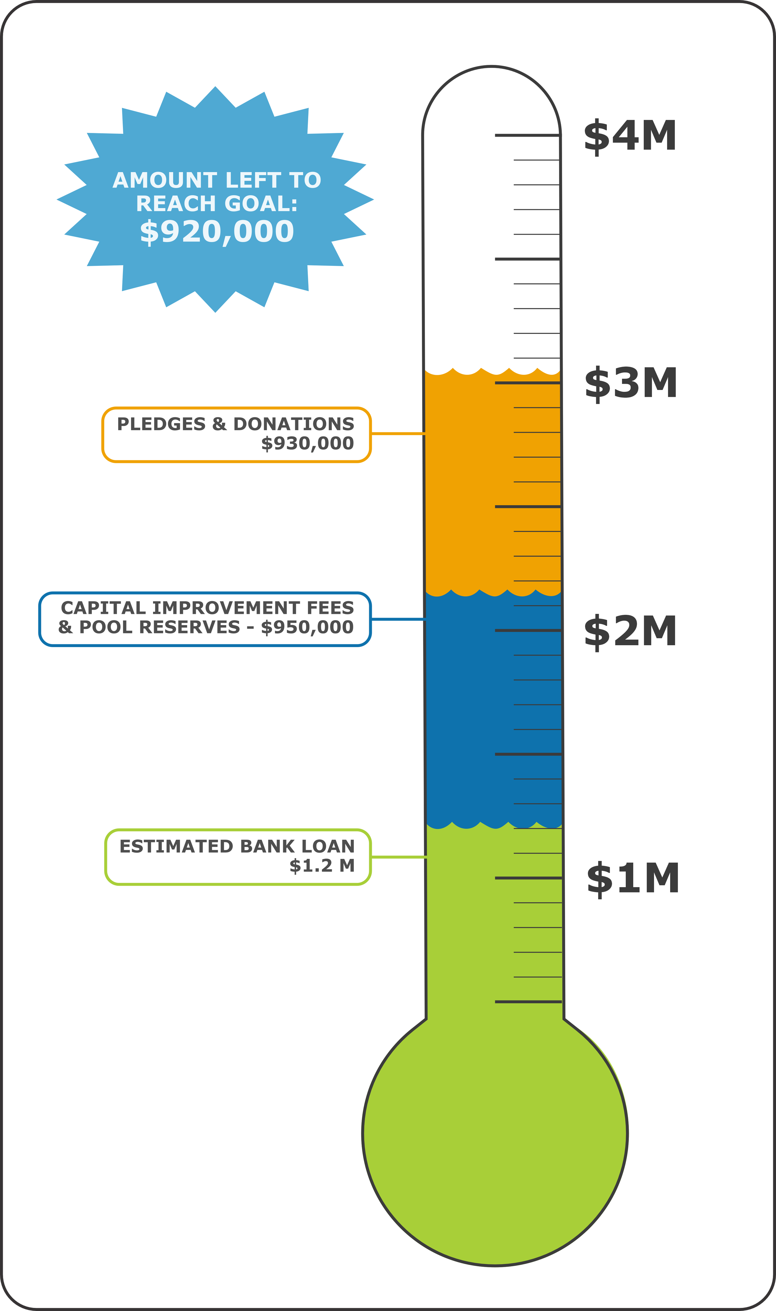 That’s right — our finish line is within reach! But we still need your help to get there. Let’s come together and bridge the gap to reach $4 million by the end of the year so this upcoming season can be our last in the old pool.